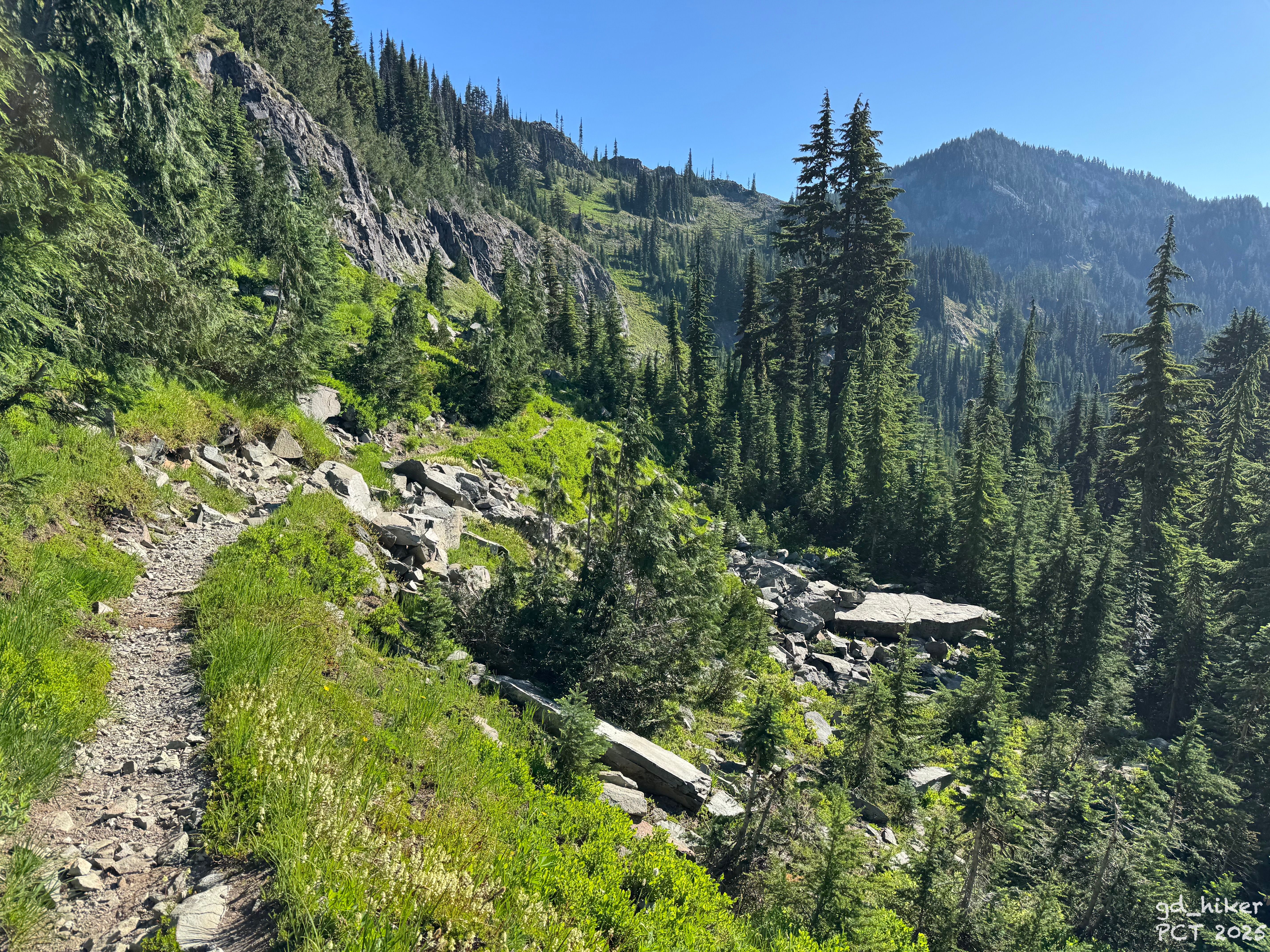 From here on—and really even before—the trail went steadily downhill. More lakes I didn’t want to filter from followed, and I simply pushed through.