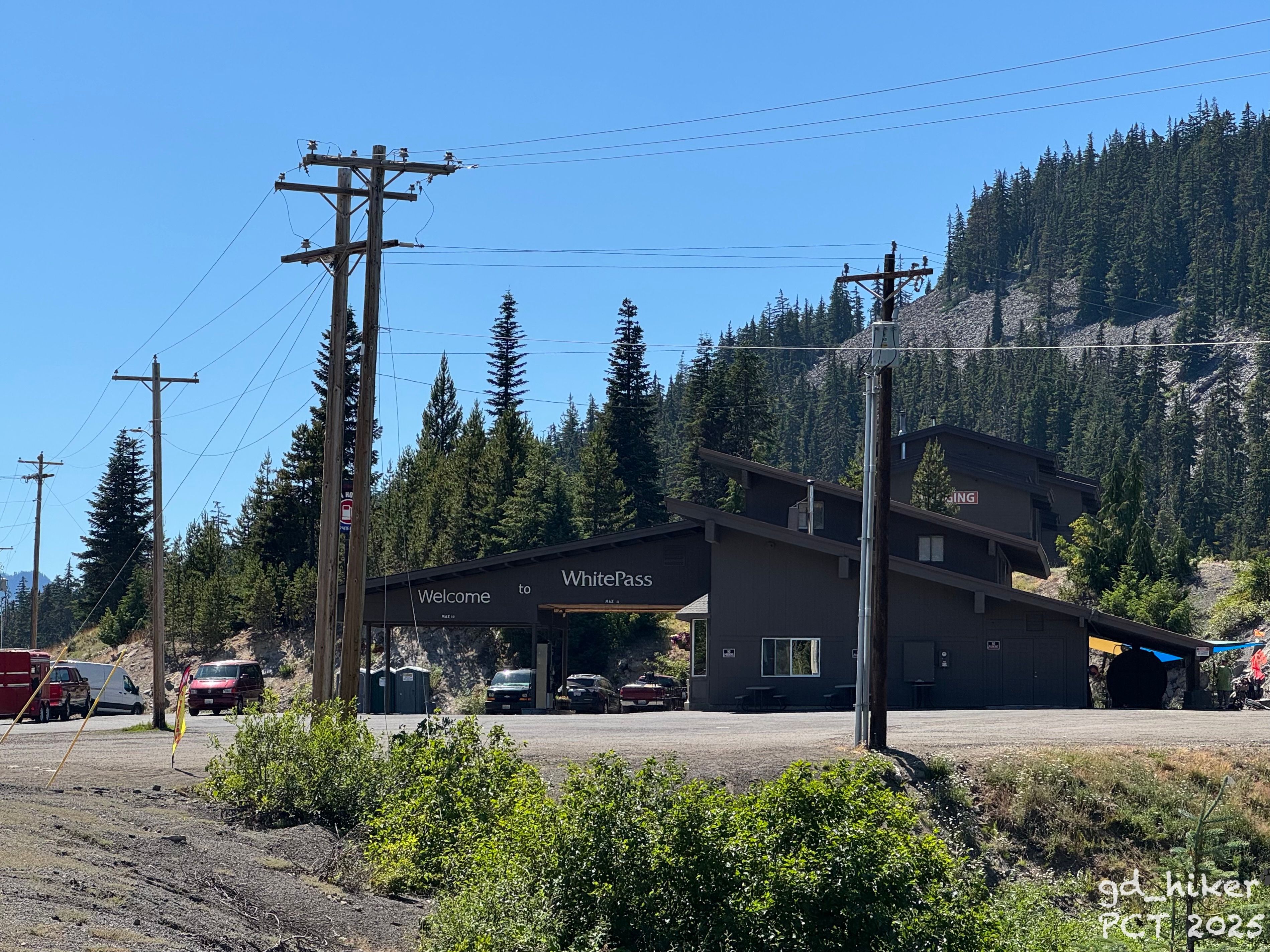 White Pass sits directly on a highway and offers a small dose of civilization: a gas station shop with showers and laundry, an overpriced lodge, and a campground right by the lake.