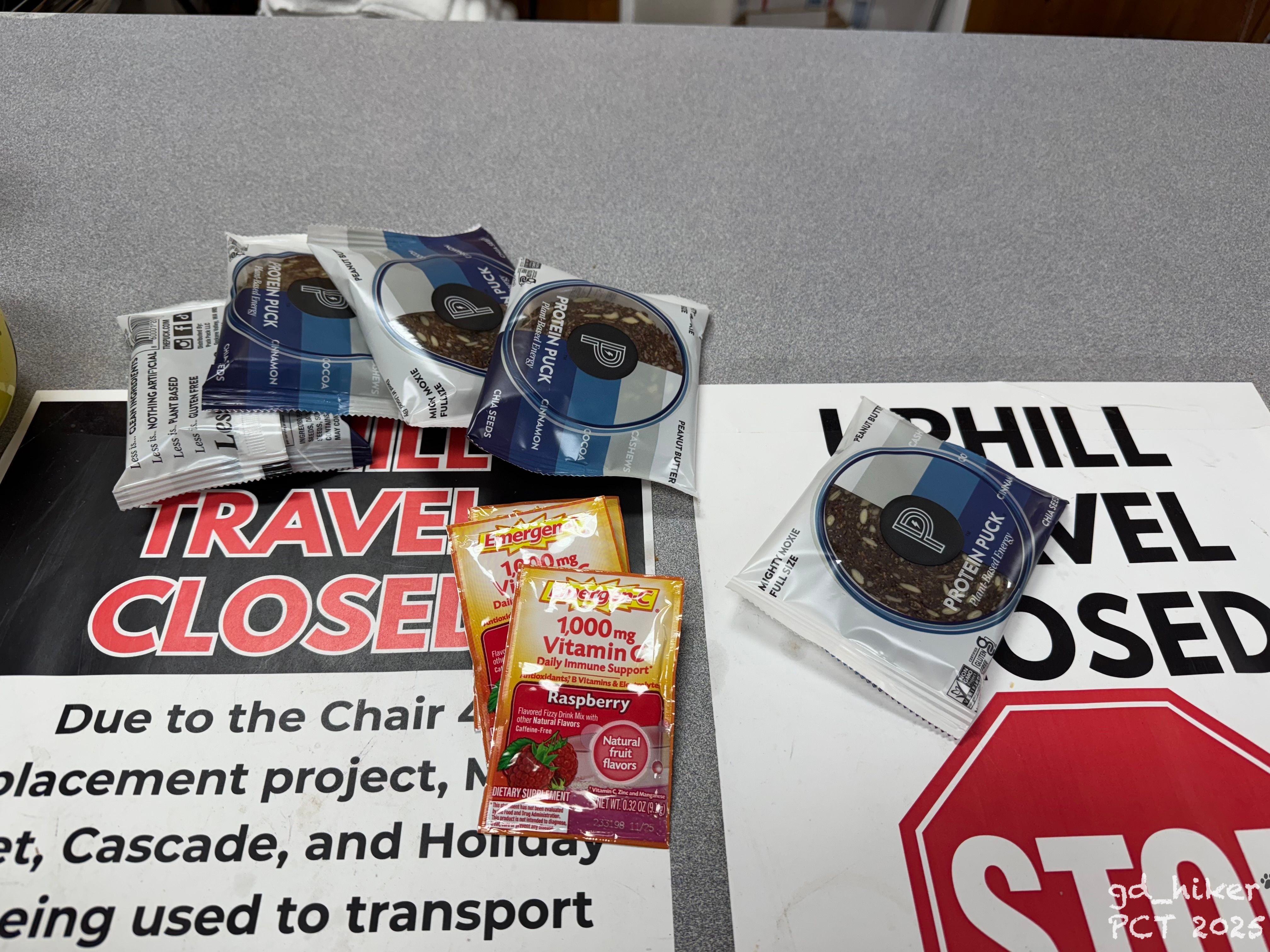 Back inside, I grabbed the oat protein cookies I had first discovered in a café in Skykomish. I was genuinely happy—they tasted fantastic and were packed with calories 😅.