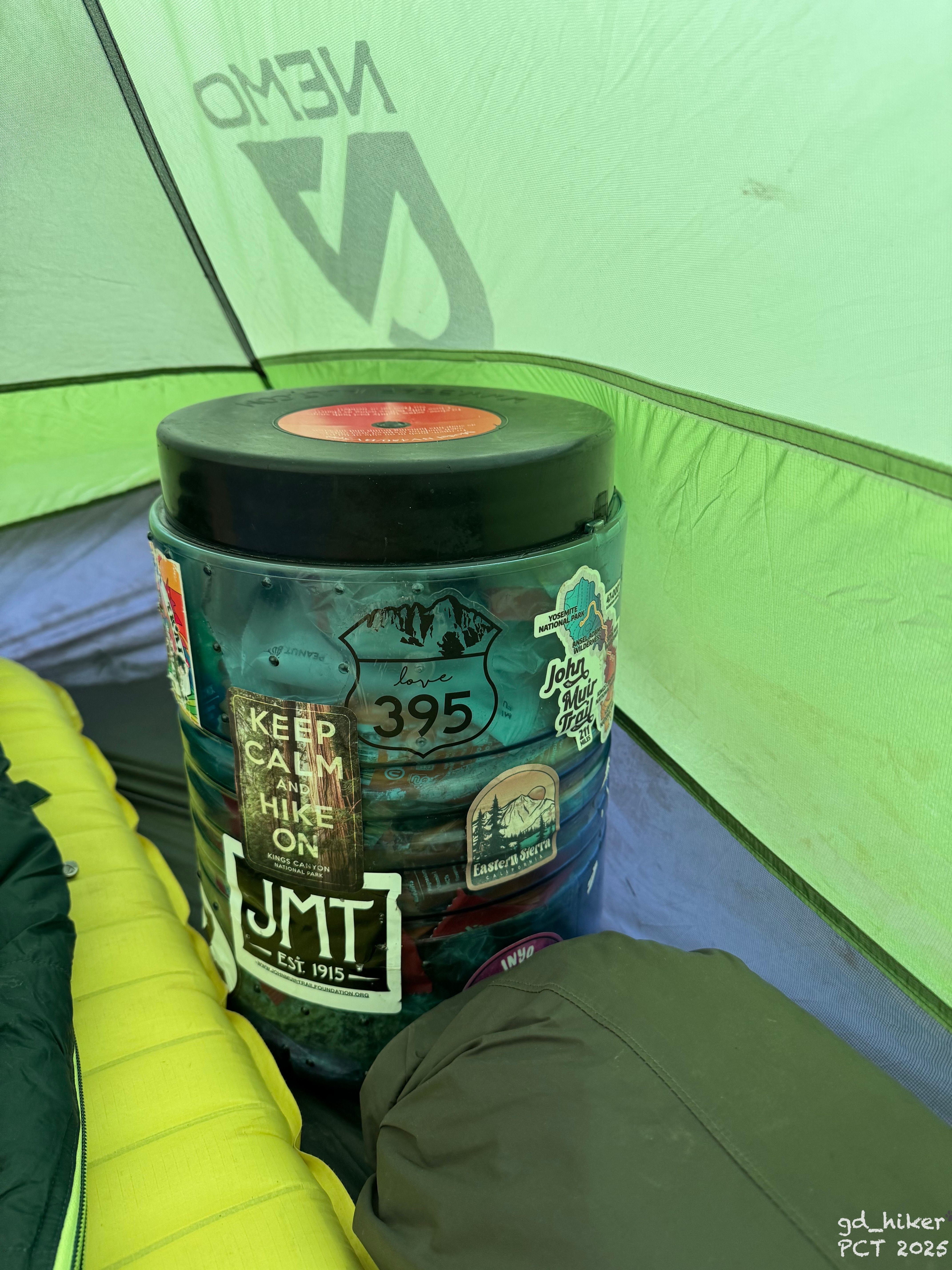 I brought my bear canister into the tent with me tonight, as I wasn’t expecting any “dangerous” animals here.