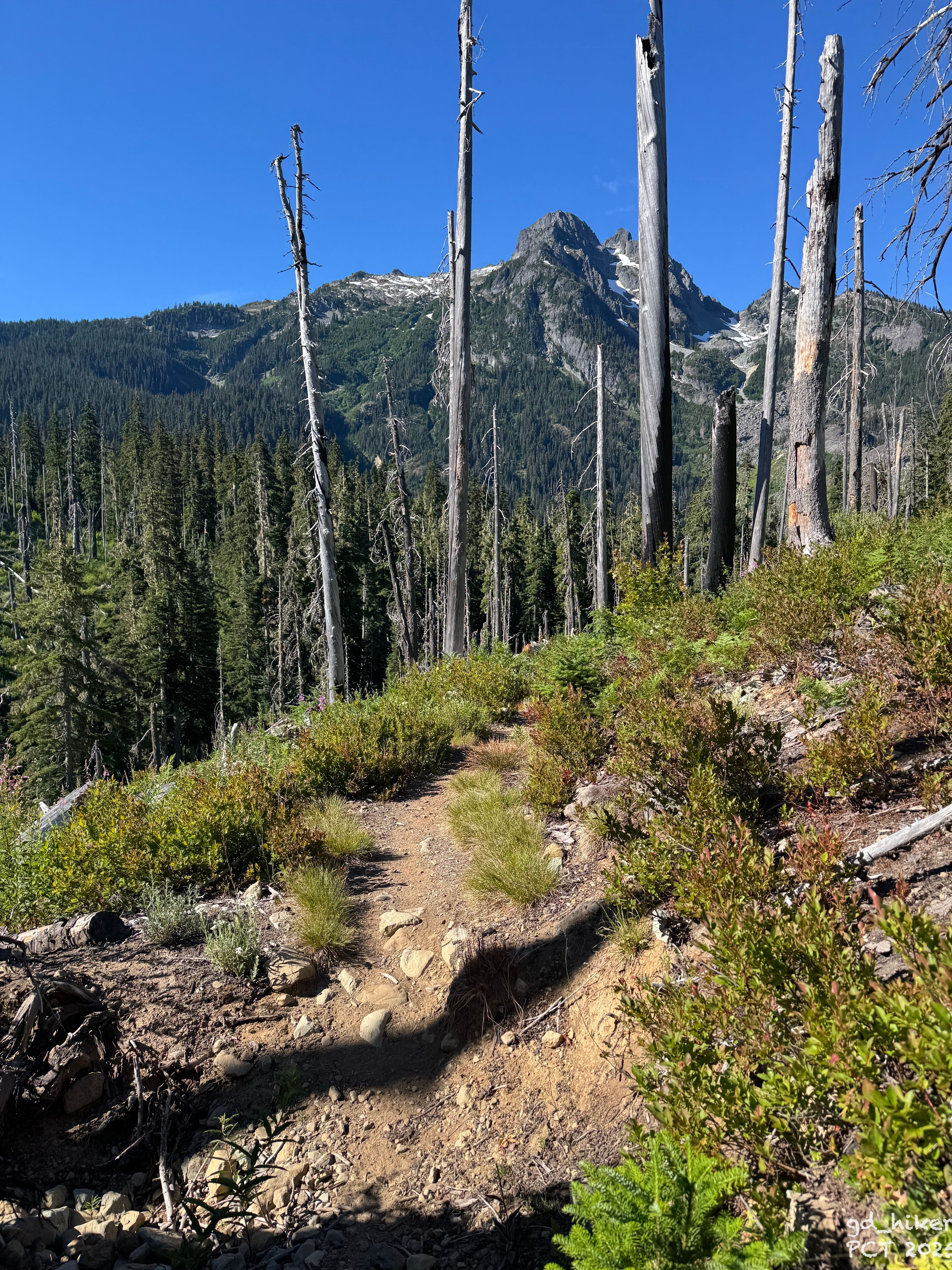 At the second crossing, a fallen log lay across Lemah Creek, carrying me over with dry feet — though not without shaky legs. Yesterday’s half-failed crossing was clearly still lingering in my body.