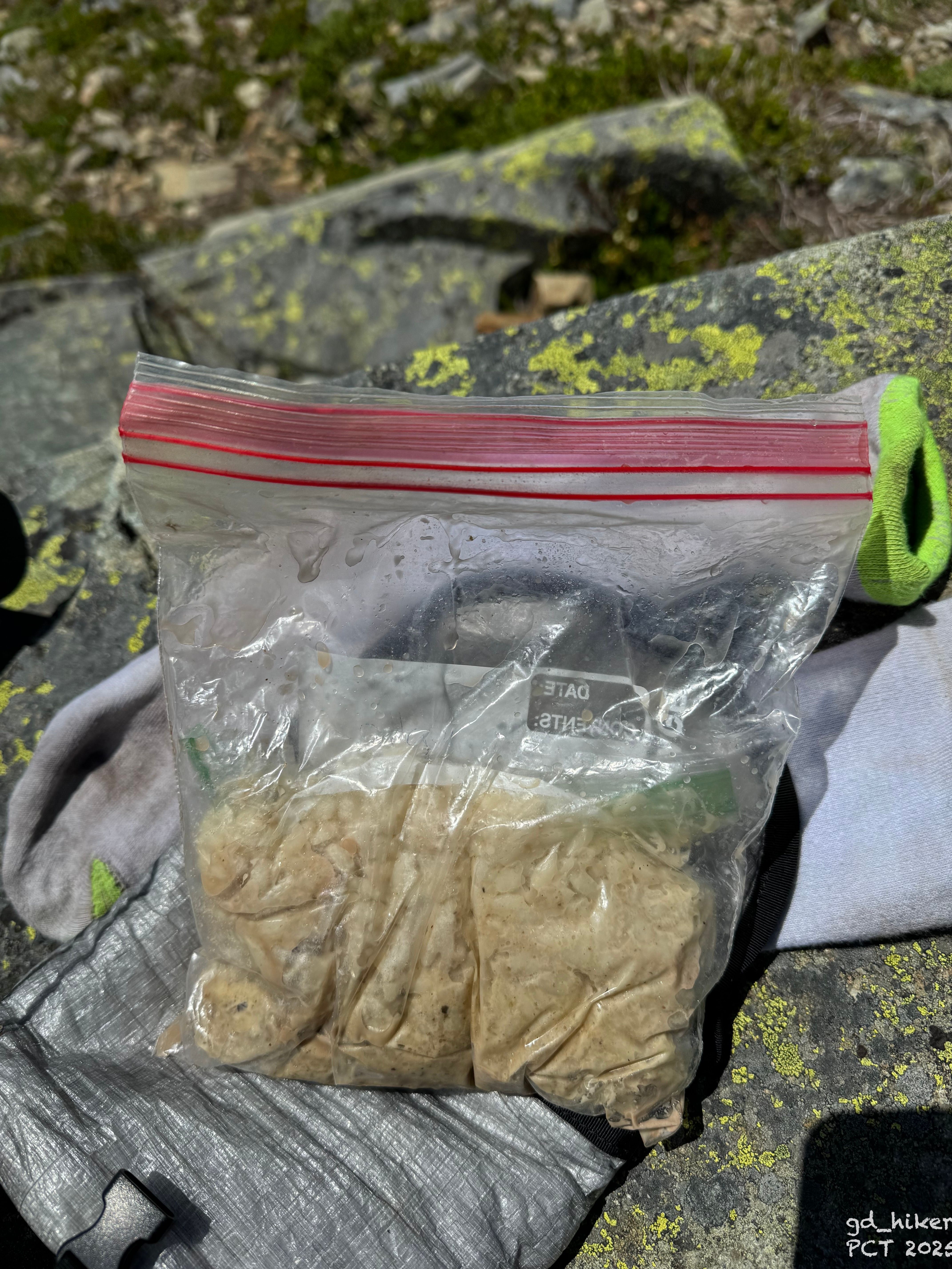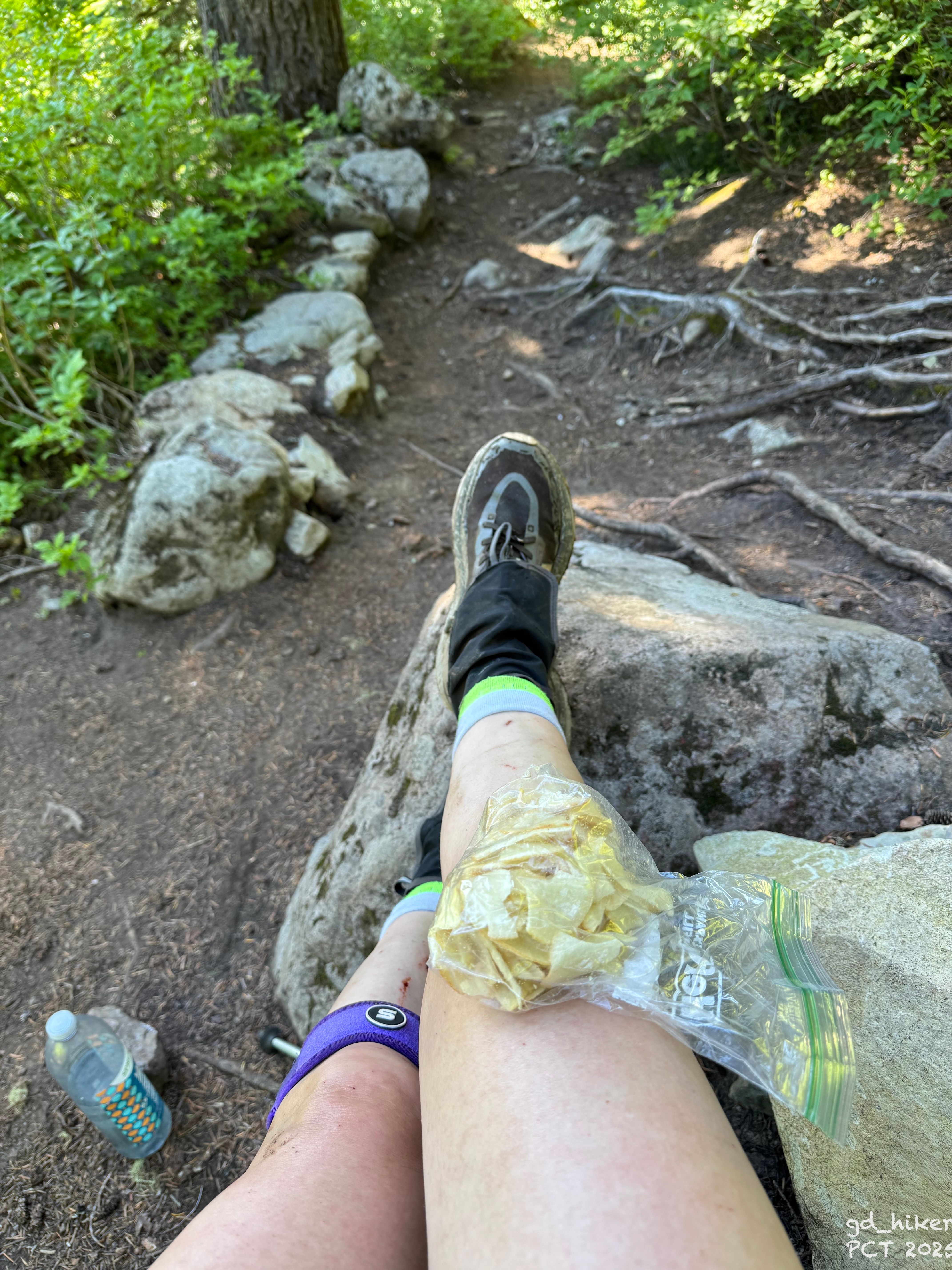 I pulled my cold-soak lunch out of my pack, took off my shoes — which were pressing against my blisters — and enjoyed my break.