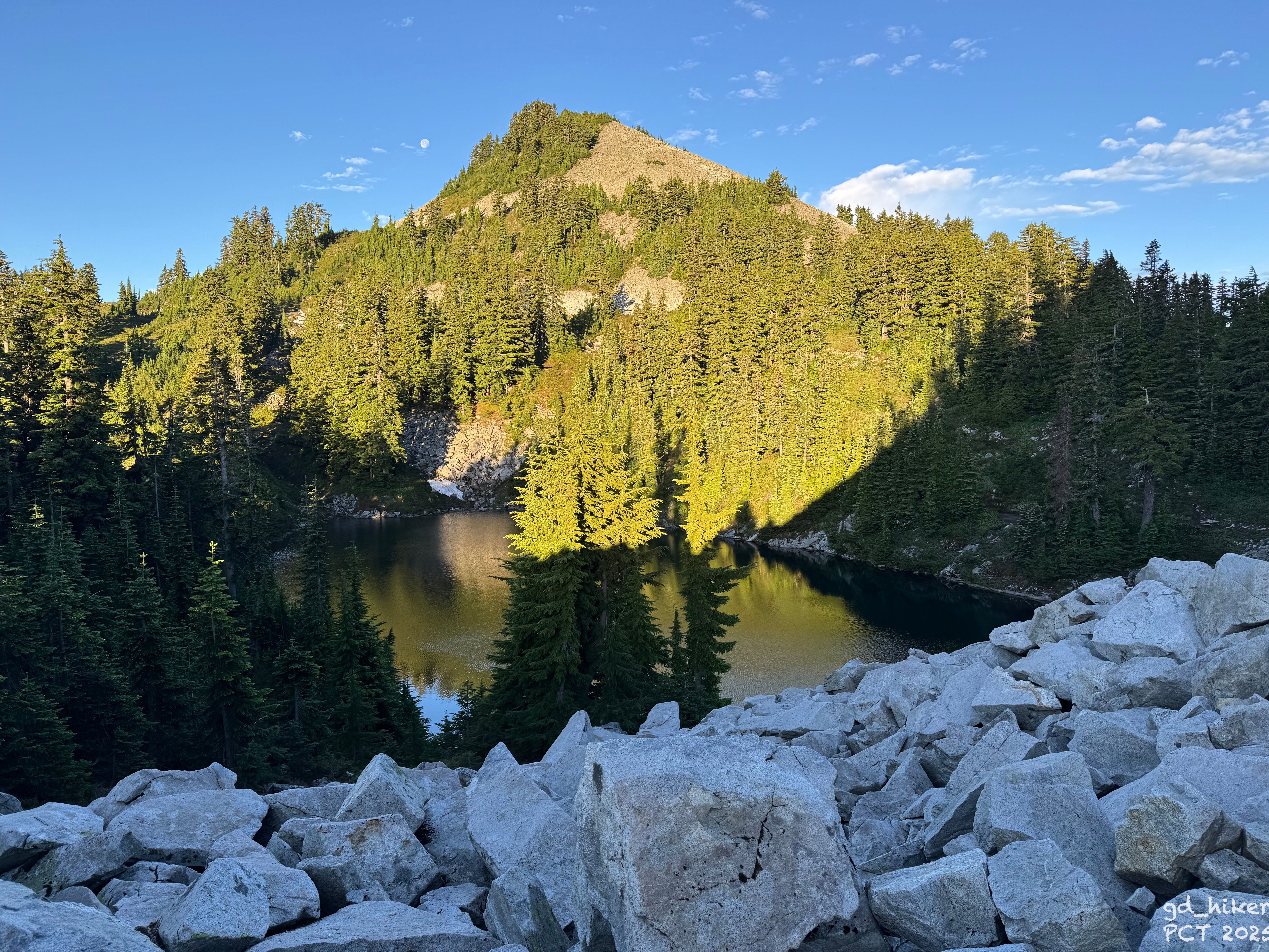 I hauled myself out and began my morning routine.Even my bear canister had a wet lid – too close to the lake, I decided.