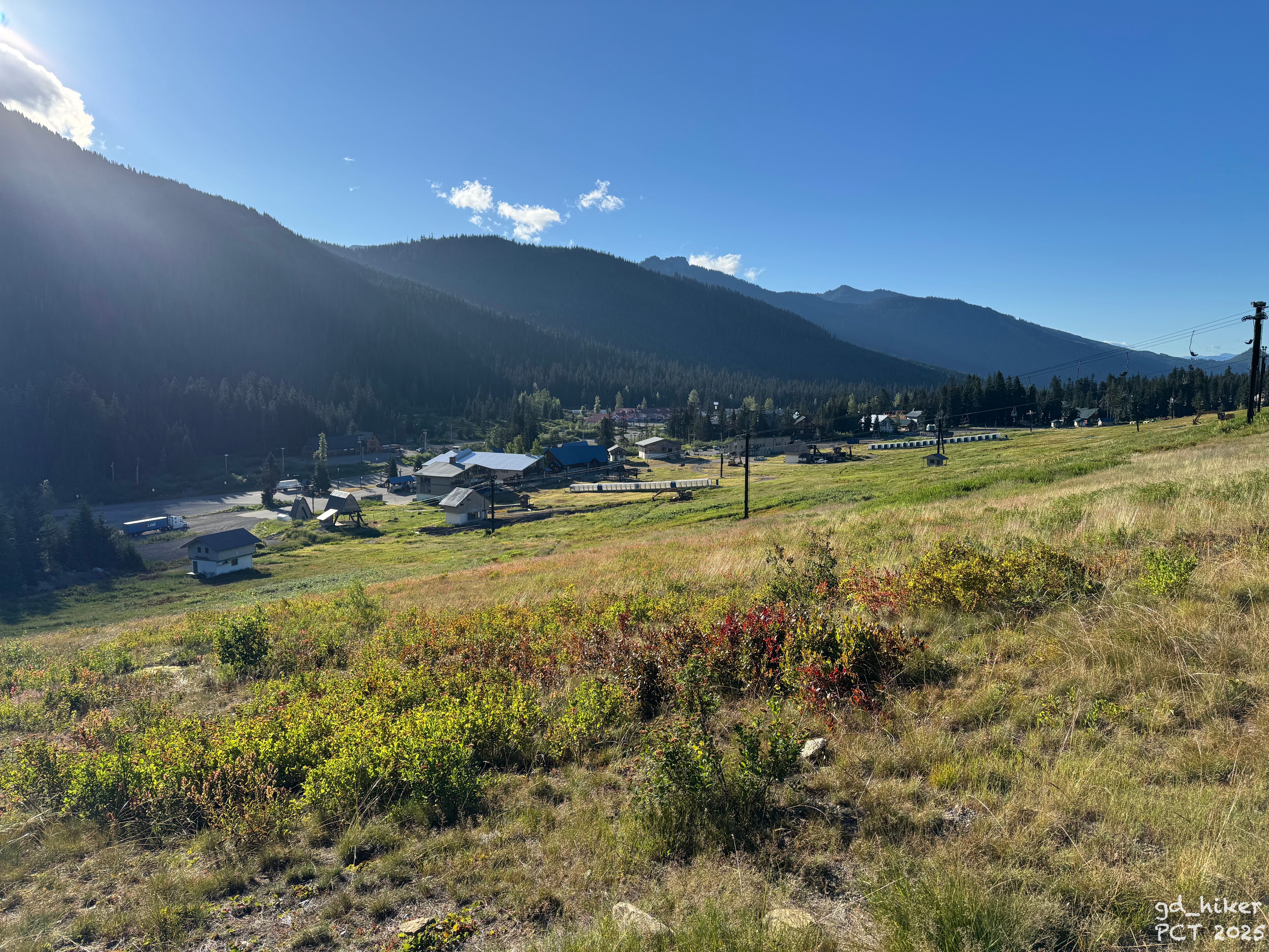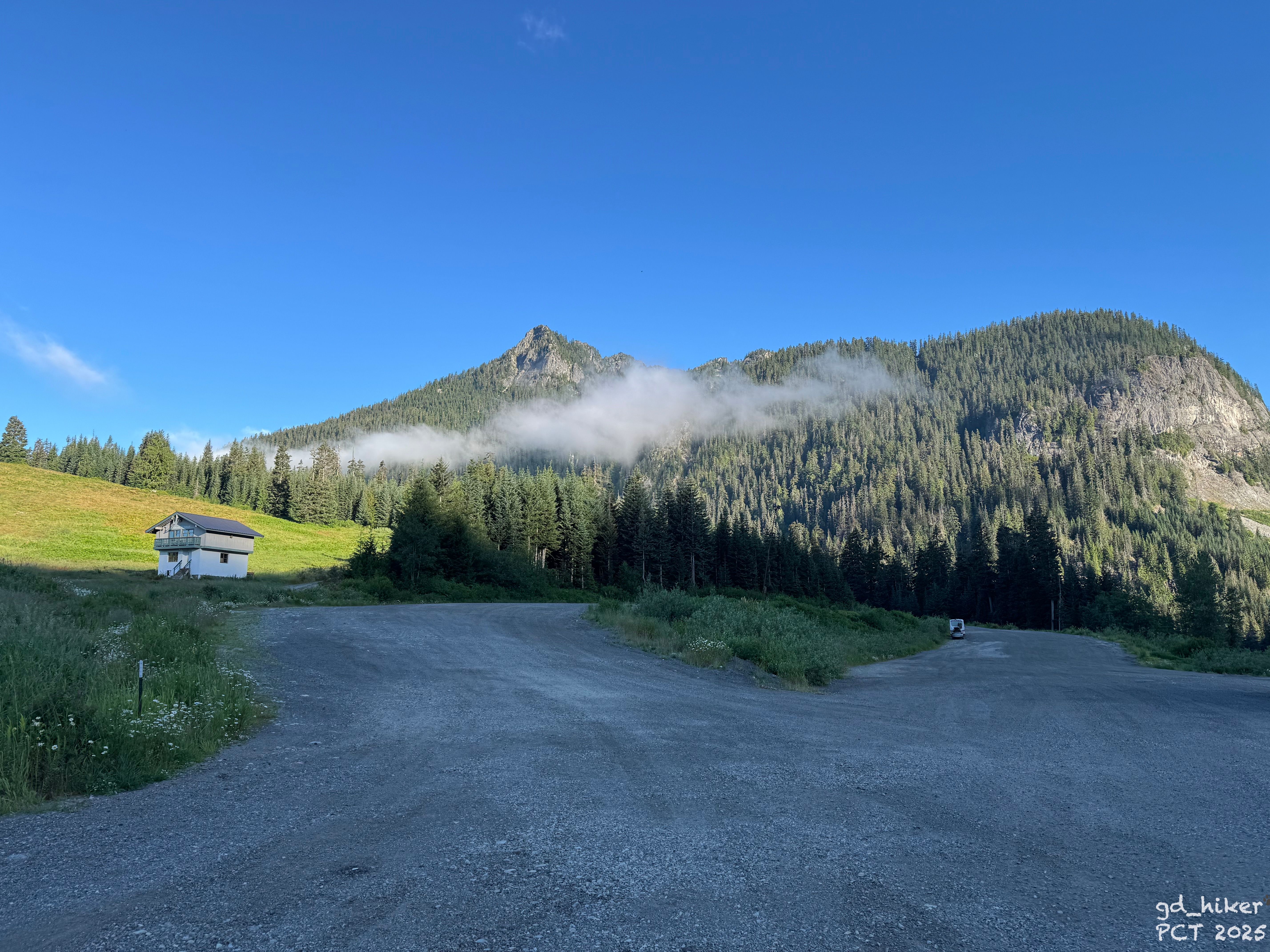 Es war 7:15 Uhr, als ich über die geteerte Straße zum nördlichen Trailhead des Snoqualmie Pass lief. In den Bergen hingen noch ein paar Wolken, doch insgesamt war es weitestgehend klar.