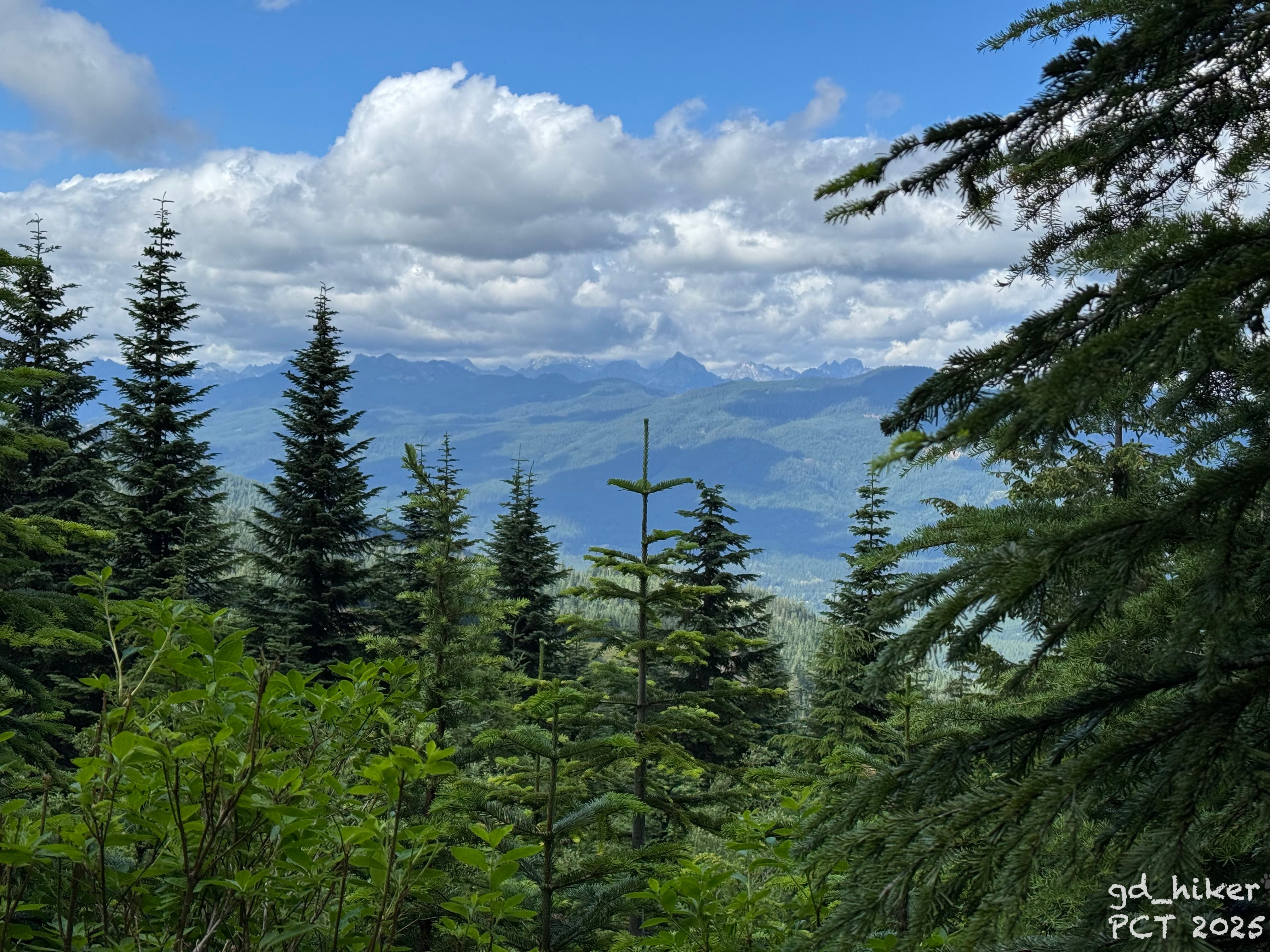 By 7:15 a.m., I was walking across the paved road toward the northern trailhead of Snoqualmie Pass. There were still a few clouds in the mountains, but overall it was mostly clear.