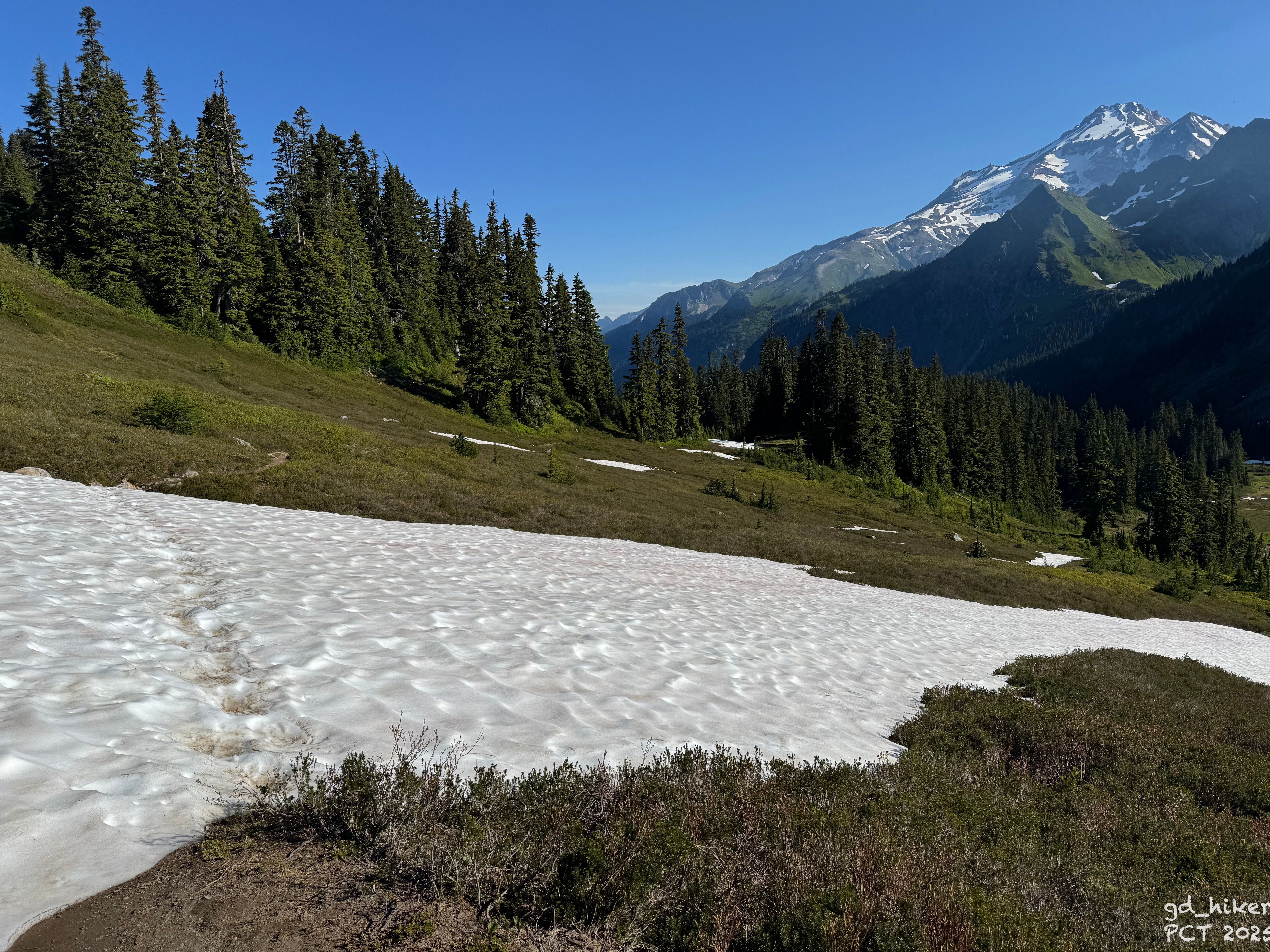 Along the way, I met another hiker. He confirmed that although there were several snowfields, none of them were truly impassable.