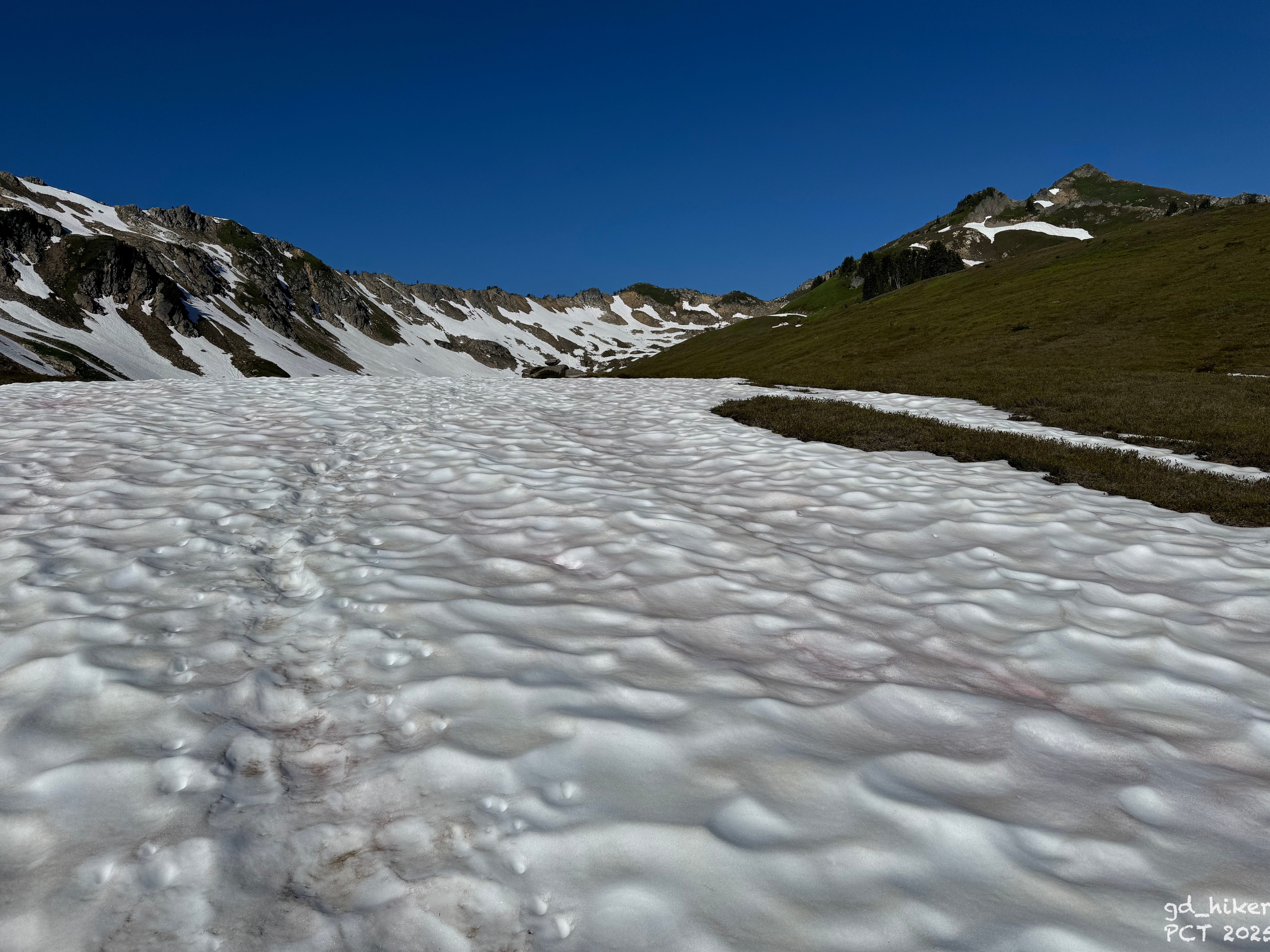 I was heading toward the next pass—Red Pass, which I had heard was still quite snow-covered.