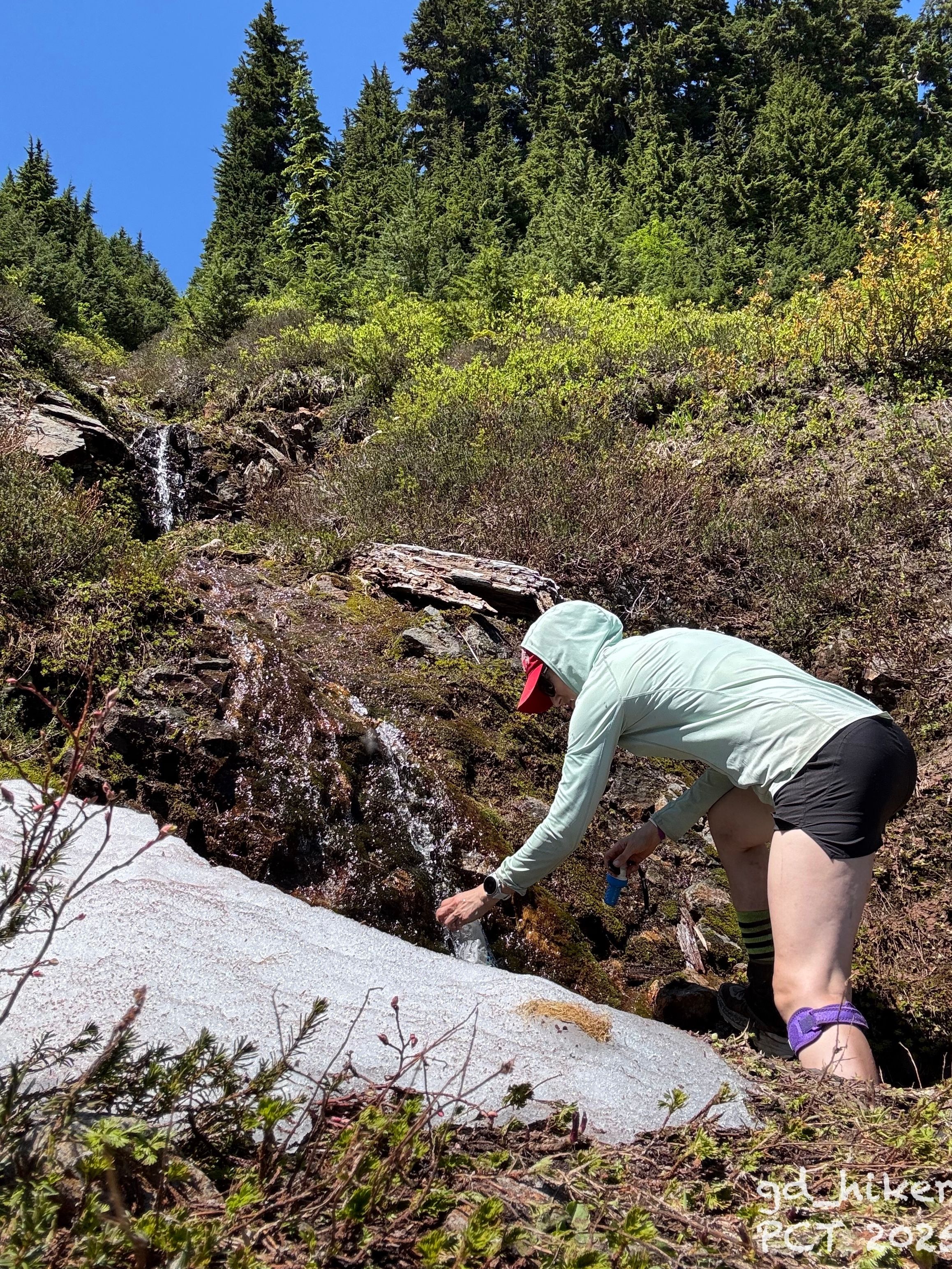 After more switchbacks and a couple of short snowfields, I reached a camp spot that was listed as such on FarOut.