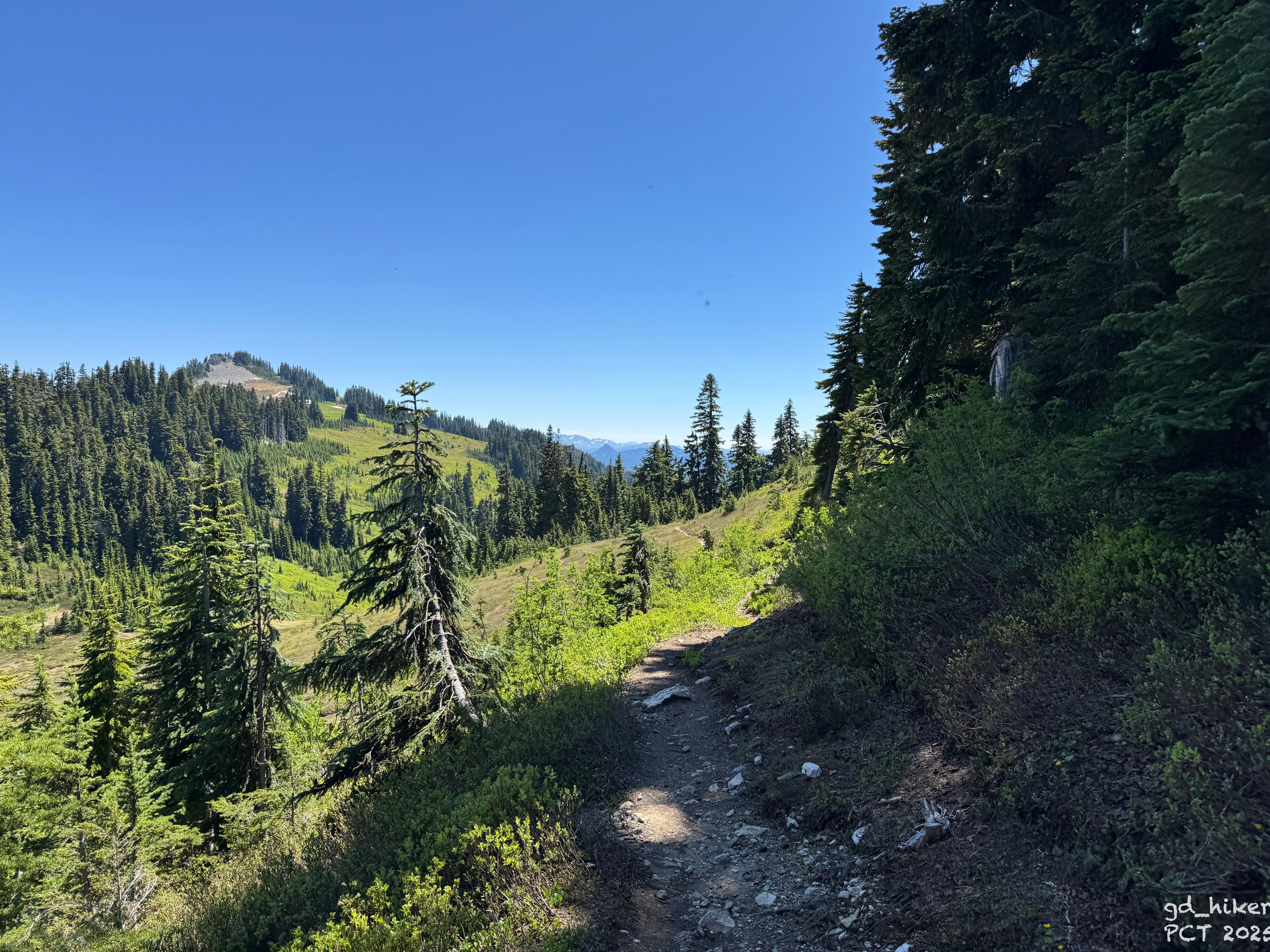 It was 10:20 a.m., the trail sloped gently downhill, and I could just enjoy walking.