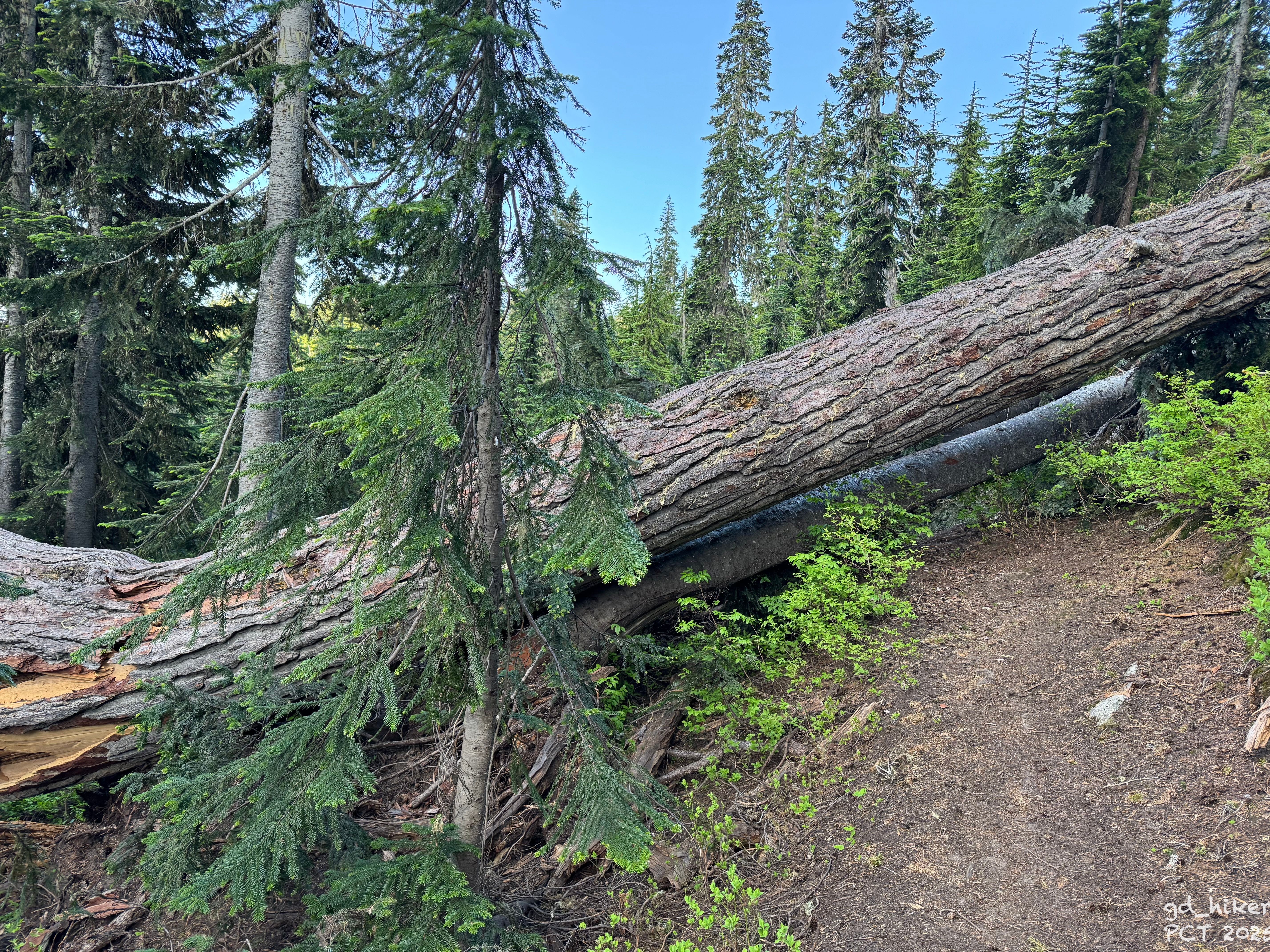Aber auch hier wuchsen Bäumen die umfallen könnten. Einige schienen sich die Aufgabe gemacht zu haben, den Trail zu versperren und wirkten auf den ersten Blick unpassierbar.