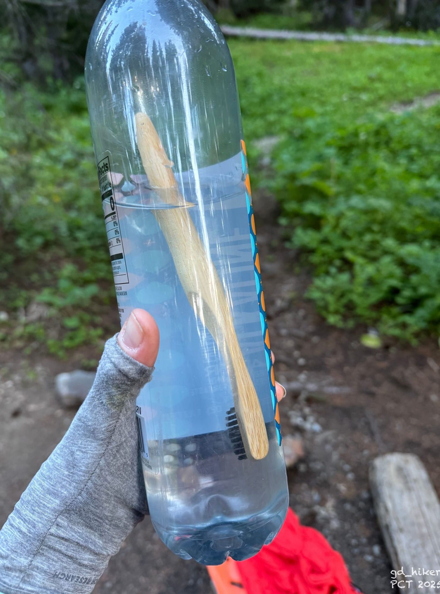 Doch bevor es überhaupt losging, fiel mir noch meine Zahnbürste in die Wasserflasche. Für einen Moment war ich ratlos – aber schließlich gelang es mir, das wichtige Utensil wieder zu befreien.